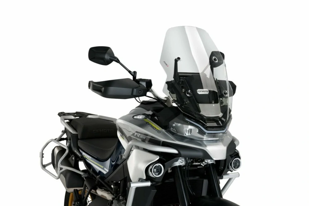 Zvýšené turistické plexi španielskej značky Puig navrhnuté na mieru CFMOTO 800MT. O 105 mm vyššia ako originálne plexi, jednoduchá inštalácia pomocou pôvodných skrutiek. K dispozícii v čírej, dymovej a tmavej farbe.