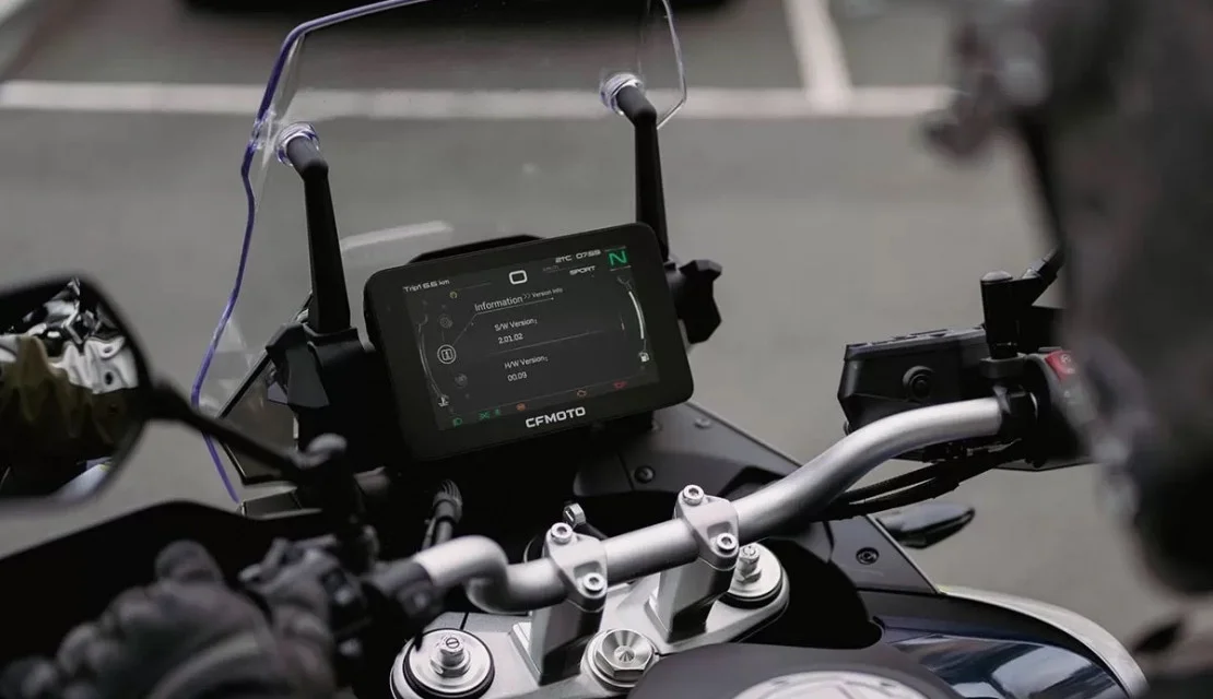 Farebný TFT displej s uhlopriečkou 7“ na zobrazenie všetkých jazdných údajov. Po spárovaní s mobilným telefónom umožňuje spravovať hudobný prehrávač a telefónny zoznam. Zobrazuje navigačné pokyny z aplikácie CFMOTO Ride.